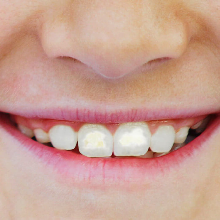 Fast jedes 4. Kind in Deutschland ist von Fluorosen betroffen. Sie zeigen sich durch kreidig-weiße Schmelzflecken auf den Zähnen. Fluorosen entstehen, wenn Kinder zu viel Fluorid aufnehmen. Eine erhöhte Fluoridaufnahme entsteht leicht durch das Verschlucken von Fluorid, das zum Beispiel in fluoridhaltiger Zahnpasta, Fluoridtabletten oder auch in Fluoridsalz enthalten ist.