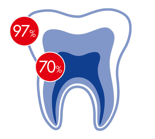 BioHAP steht für „Biomimetischer HydroxylAPatit“. Das ist der Stoff, aus dem unsere Zähne gemacht sind. Denn ca. 97% unseres Zahnschmelzes und ca. 70% unseres Dentins bestehen aus Hydroxylapatit.